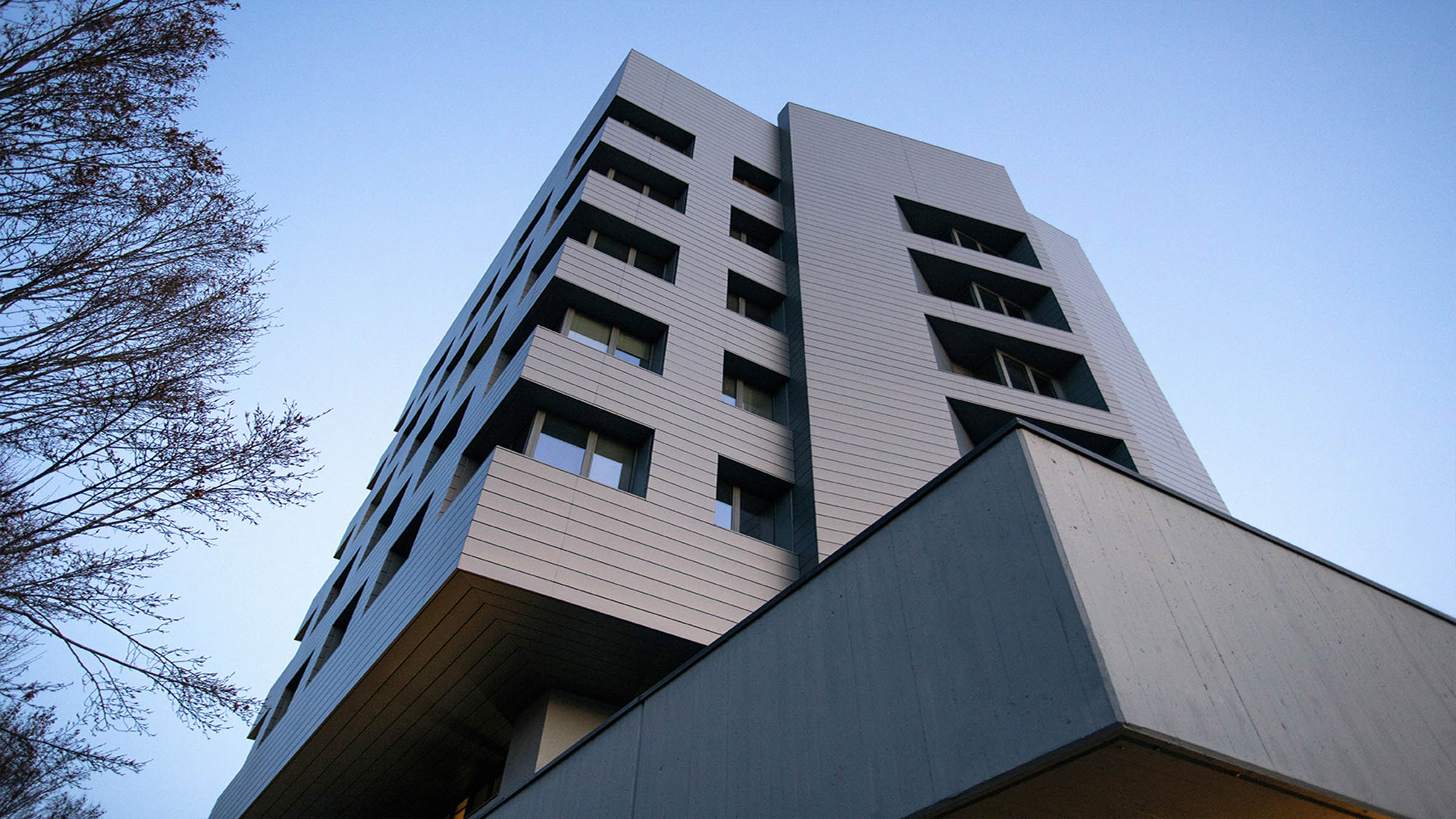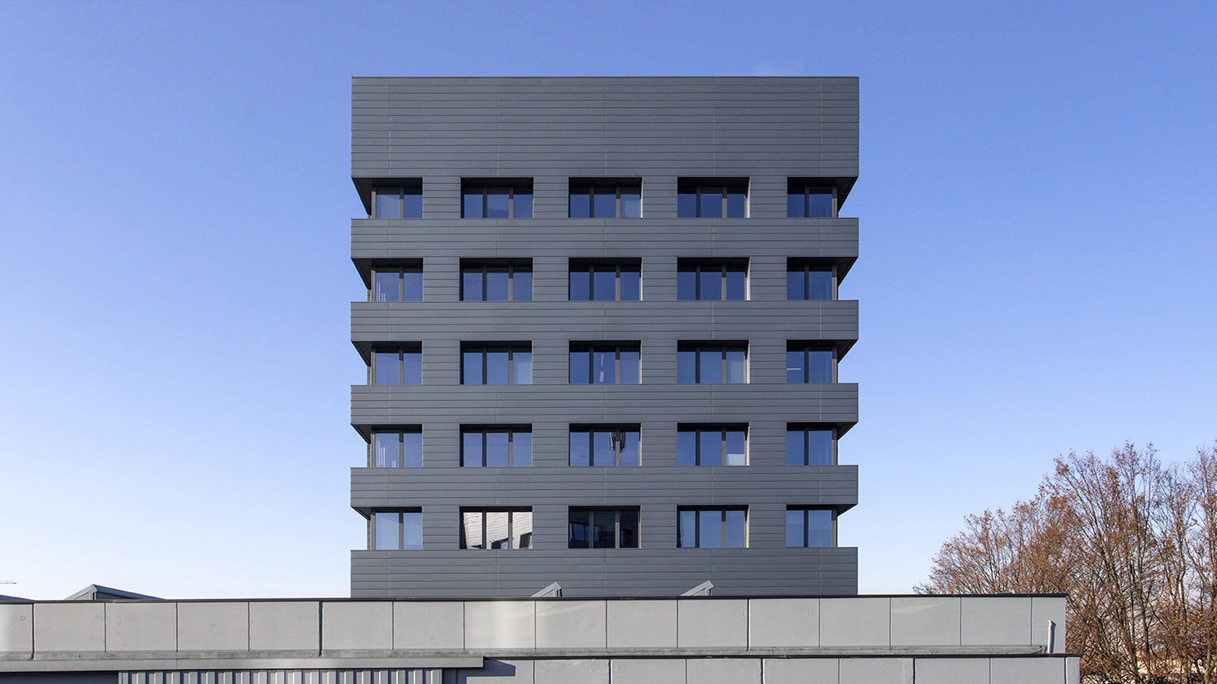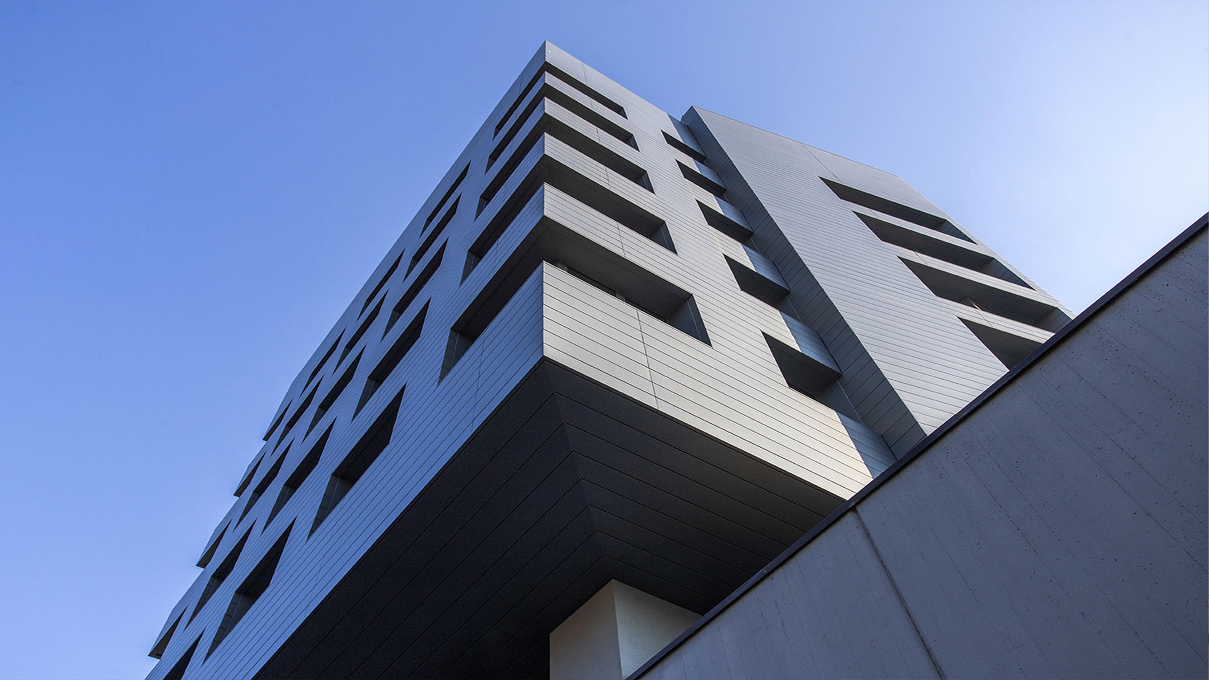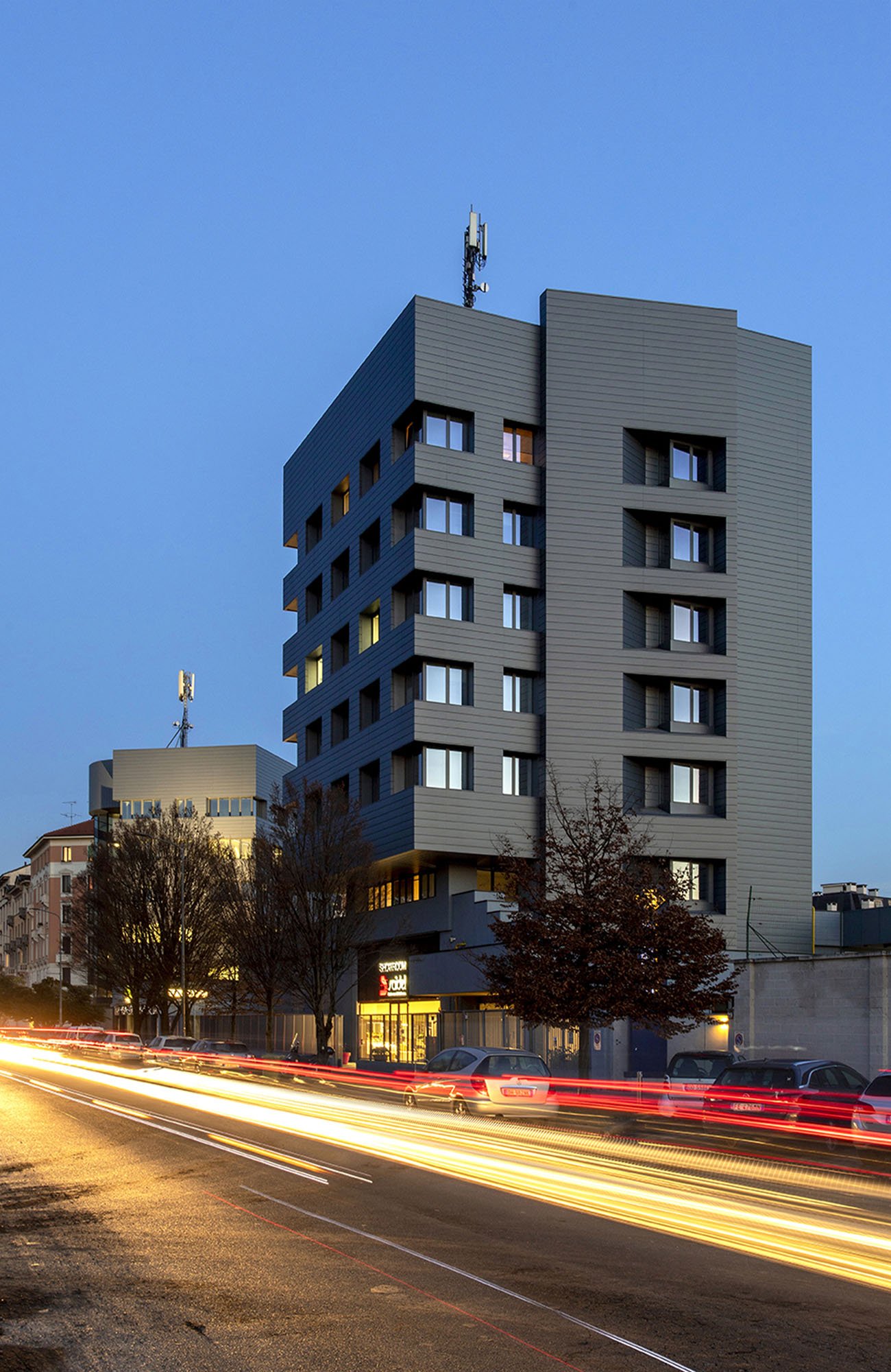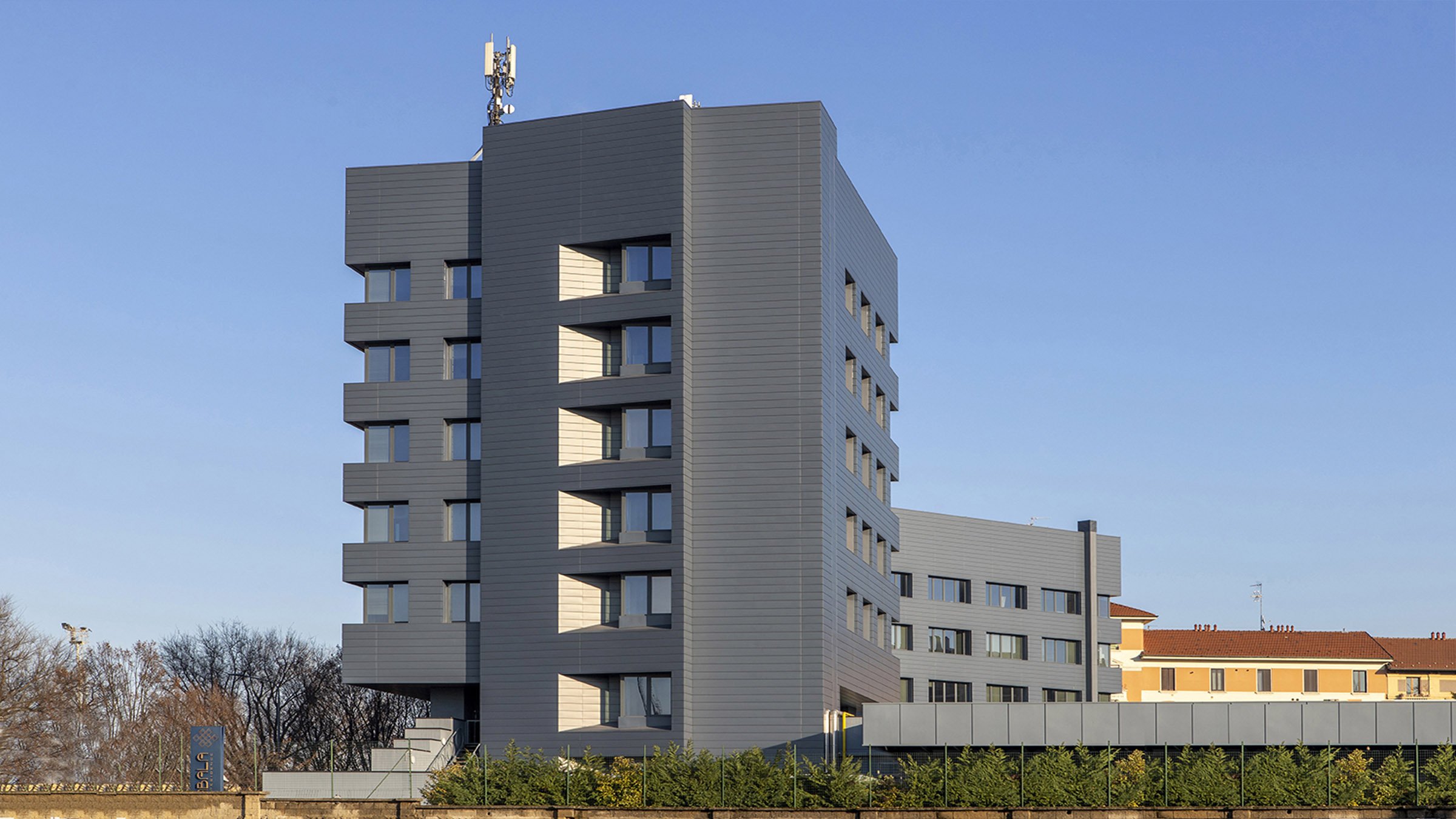 Riqualificazione di due torri a destinazione terziaria. Questi edifici, basati sull’efficientamento energetico, sono fortemente riconoscibili grazie ai materiali (VMZINC - www.vmzinc.com) utilizzati per le facciate.